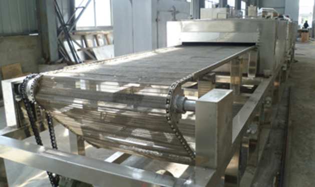 帶式干燥機(jī)概述又稱網(wǎng)帶式干燥機(jī),帶式干燥烘箱,翻板干燥機(jī)。用于透氣性較好的片狀、條狀、顆粒狀物料的連續(xù)成批干燥,尤其適合于含水率高,且具備熱敏性能的物料,如脫水蔬菜、中藥飲片等。可干燥經(jīng)造;蛑茽詈蟮拿撍疄V餅類的膏狀物料。對(duì)于含水率特別高的物料,可用多臺(tái)串聯(lián)形成流水線。被干燥烘烤的物料連續(xù)從進(jìn)料口進(jìn)入,通過(guò)網(wǎng)帶傳送裝置勻速經(jīng)過(guò)加熱隧道,向出料口運(yùn)行。物料在運(yùn)行過(guò)程中被加熱,將濕氣或溶劑蒸發(fā)后排出室外。一般為單層式結(jié)構(gòu),有時(shí)為了節(jié)約空間增加產(chǎn)量,會(huì)設(shè)計(jì)制造成三到九層結(jié)構(gòu)。
